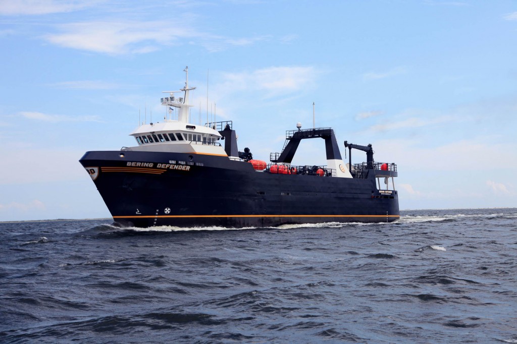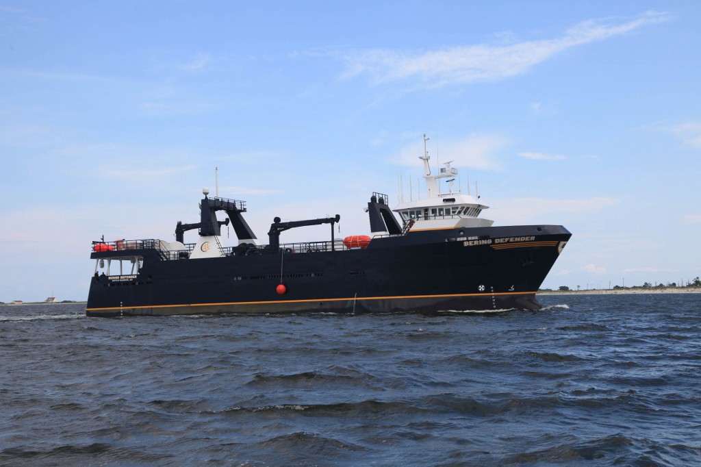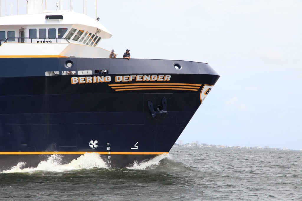 The Bering Defender, a fishing trawler based in Alaska, primarily fishing Pollock in the Bering Sea. This vessel was completely rebuilt, upgraded and re-powered by Patti Marine in Pensacola, Florida in 2012. Capitan Grayson Klampe.
